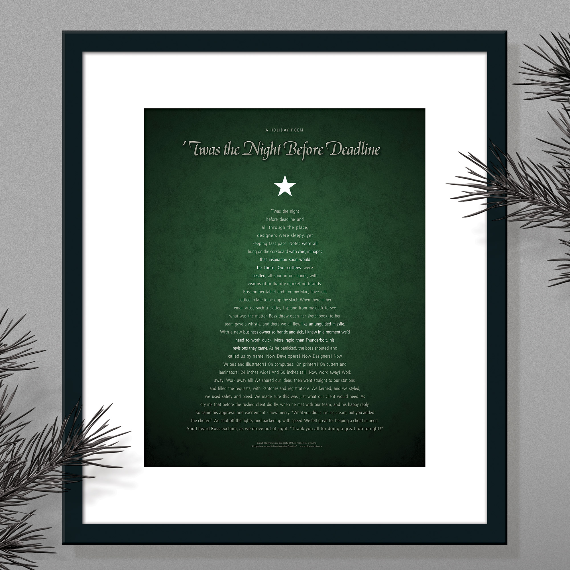 Graphic Designers will relate to this fun twist on the classic poem, “‘Twas the Night Before Christmas” (Originally: “A Visit from St. Nicholas”).